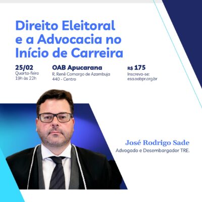 📍 Apucarana Ideal para advogados iniciantes, este curso apresenta o Direito Eleitoral como uma estratégia para alavancar a carreira, destacando a agilidade processual e o bom retorno financeiro. O conteúdo abrange a prática das principais ações judiciais, o desenvolvimento de soft skills e o uso humanizado da Inteligência Artificial na...