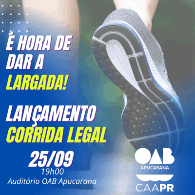 A OAB Apucarana, em parceria com a CAAPR, tem a alegria de anunciar mais uma iniciativa voltada à saúde e ao bem-estar da advocacia: o Projeto Corrida Legal! 📅 Data: 25/09🕖 Horário: 19h00📍 Local: Auditório da OAB Apucarana Esse projeto só se tornou possível graças à união de esforços e...